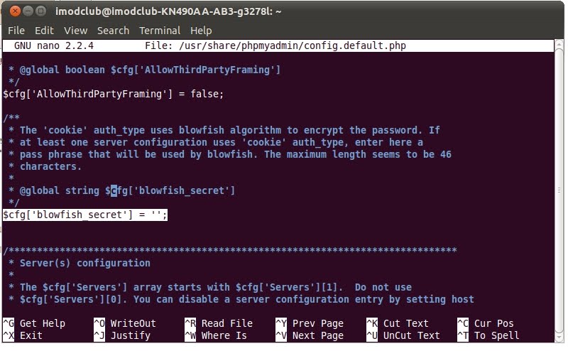 sudo nano /usr/share/phpmyadmin/config.default.php