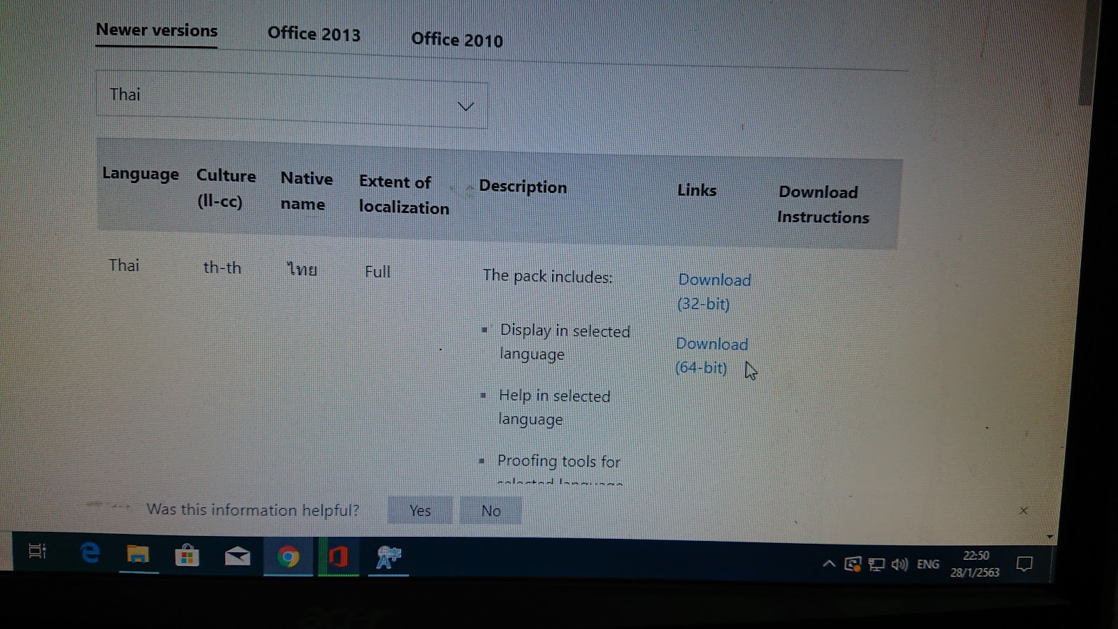ตัวลิงค์จะเปิดเว็บให้เราดาวน์โหลด (ต้องเชื่อมต่ออินเตอรฺ์เน็ตความเร็วสูงด้วยนะครับ) ให้เราเลื่อนลงไปด้านล่างที่หัวข้า Step 1 : Install the language accessory pack เพื่อดาวน์โหลดส่วนที่เป็นภาษาไทยครับ