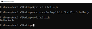 echo console.log("Hello World") > hello.js